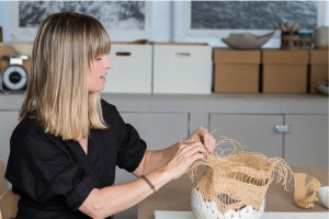 It’s the vibrant cobalt color found in traditional Japanese pottery that inspires Israeli artist Zemer Peled to create her flower sculptures from blue hued ceramic shards. She builds sheets of clay, fires them, smashes them to thousands…