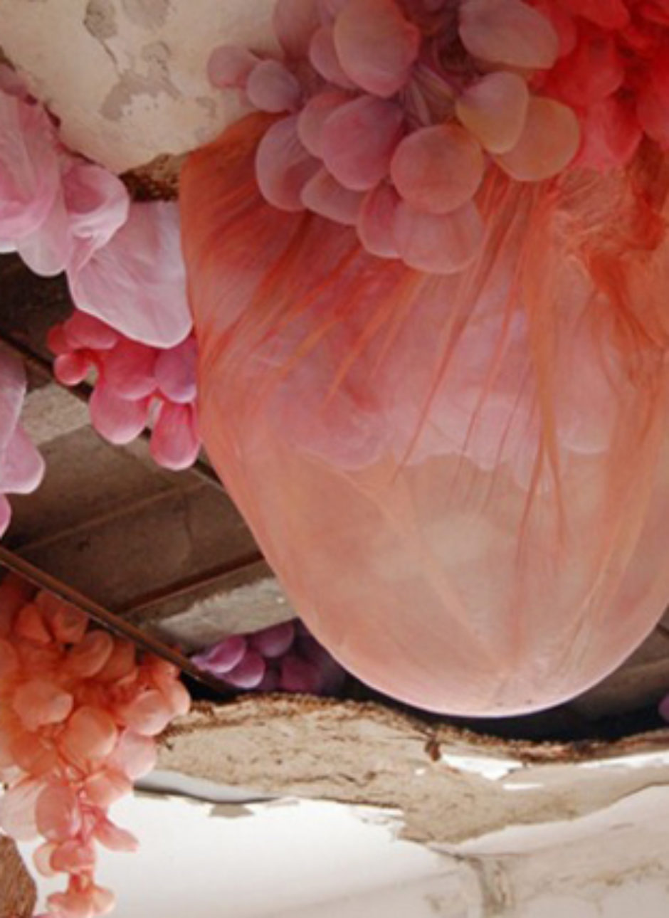 It’s mind blowing to see what artist Lisa Kellner is able to do with silk organza, thread, and various pigments. Her immense sculptures take the shape of varicolored cell structures and organ-like forms . . . and look…