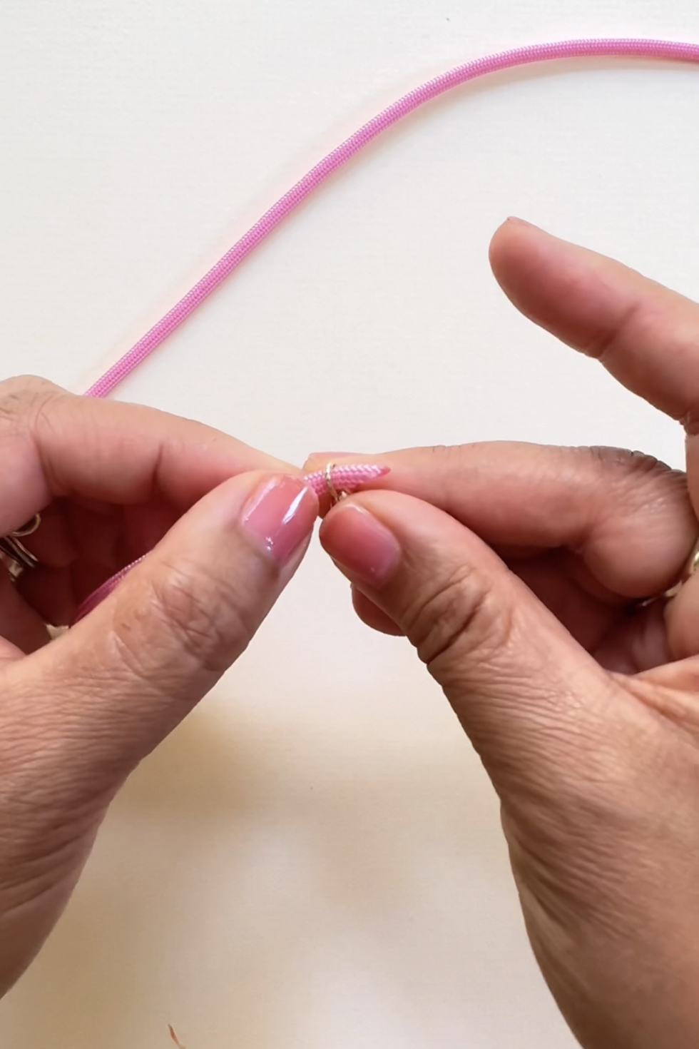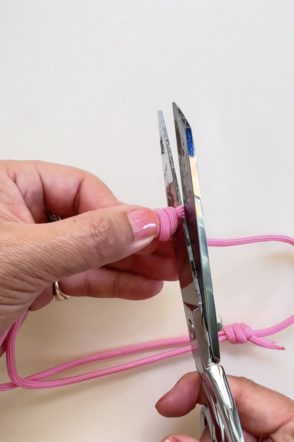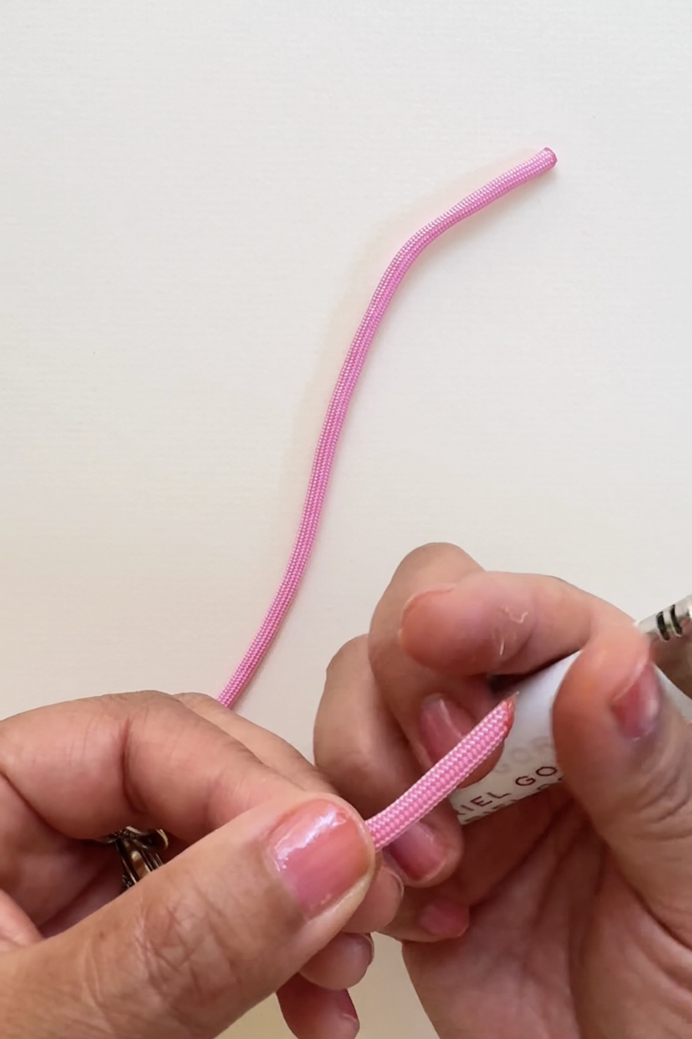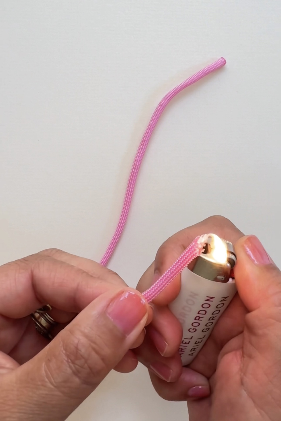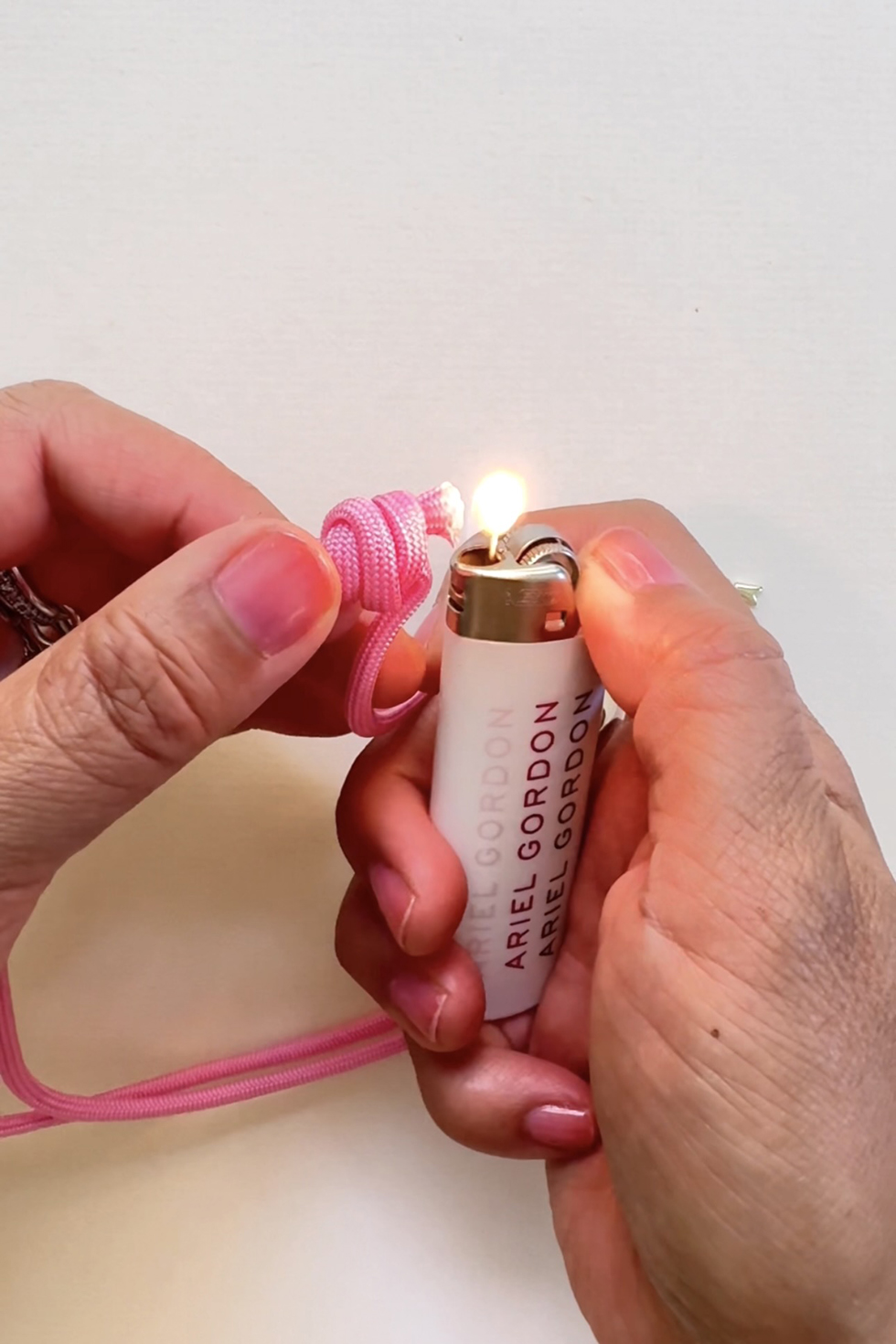 Trim the ends, leaving about 3mm of rope. Using the lighter, burn the ends until you see them melt slightly.