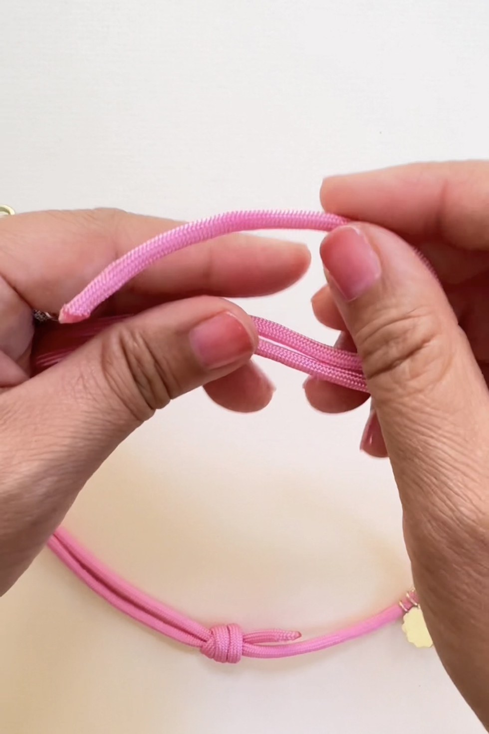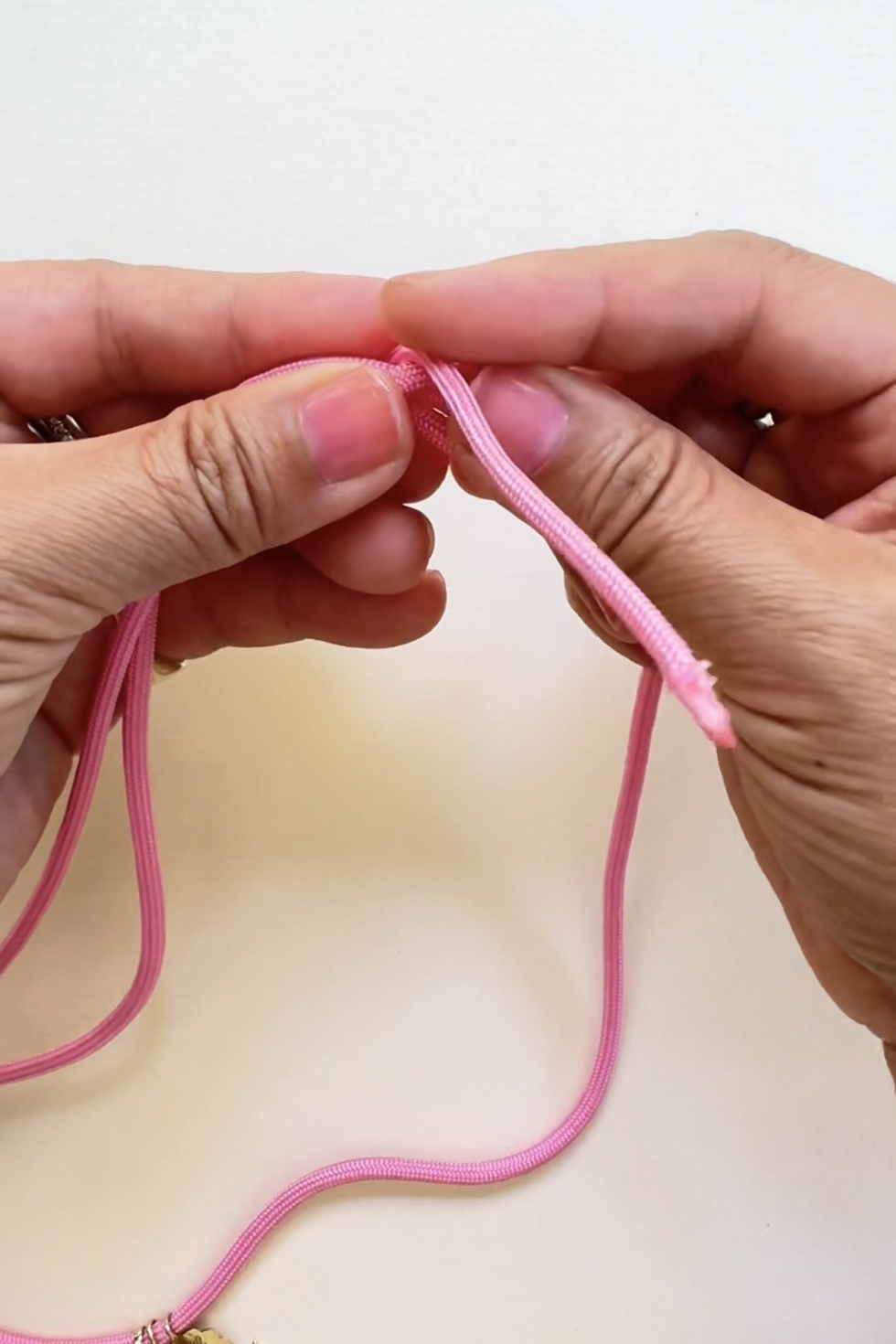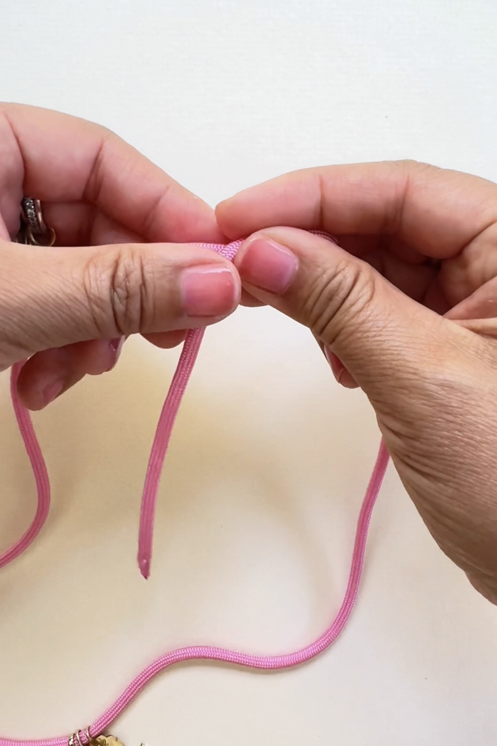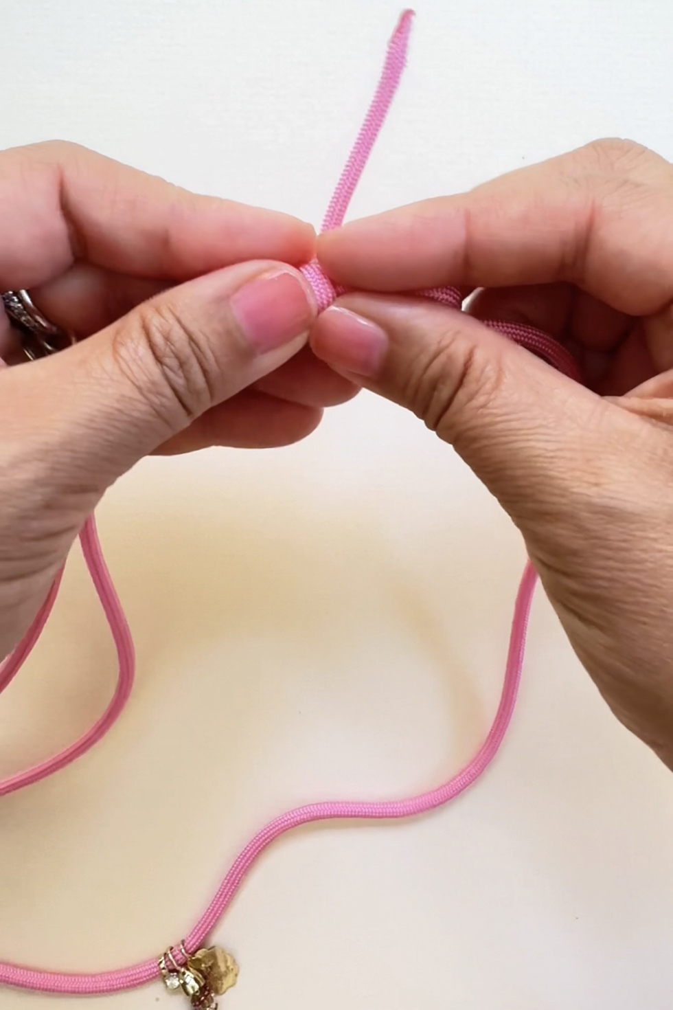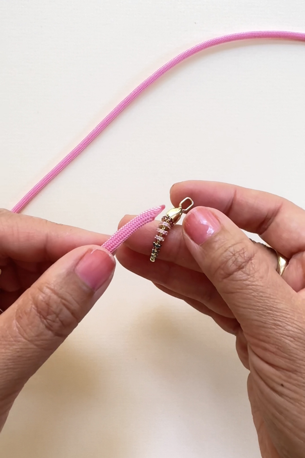 This is so the rope doesn't fray and so that you can create a sharp tip. Add charms.