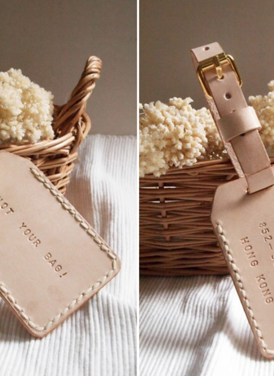 I’m suddenly in desperate need of some personalized, creamy blush leather goods . . . (Harlex luggage tags $35, Harlex card holder $50, Harlex leather bag $170)